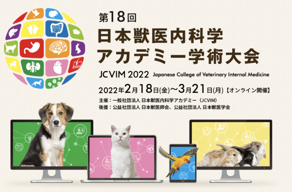 第18回日本獣医内科学アカデミー学術大会には、2,076名(獣医師/一般:1,651名、学生:148名、動物看護師:197名、スポンサー:62名、実行委員:18名)がオンラインにて参加されたと、報告をいただきました。